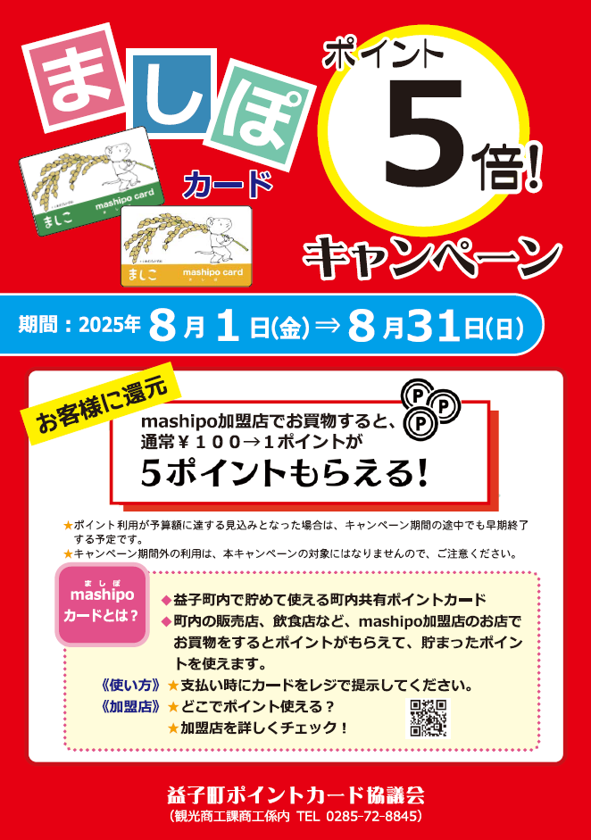 ましぽカードポイント5倍キャンペーン実施のお知らせ!